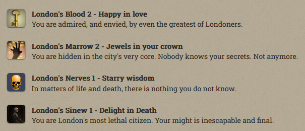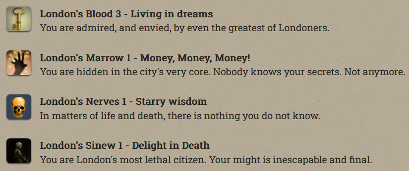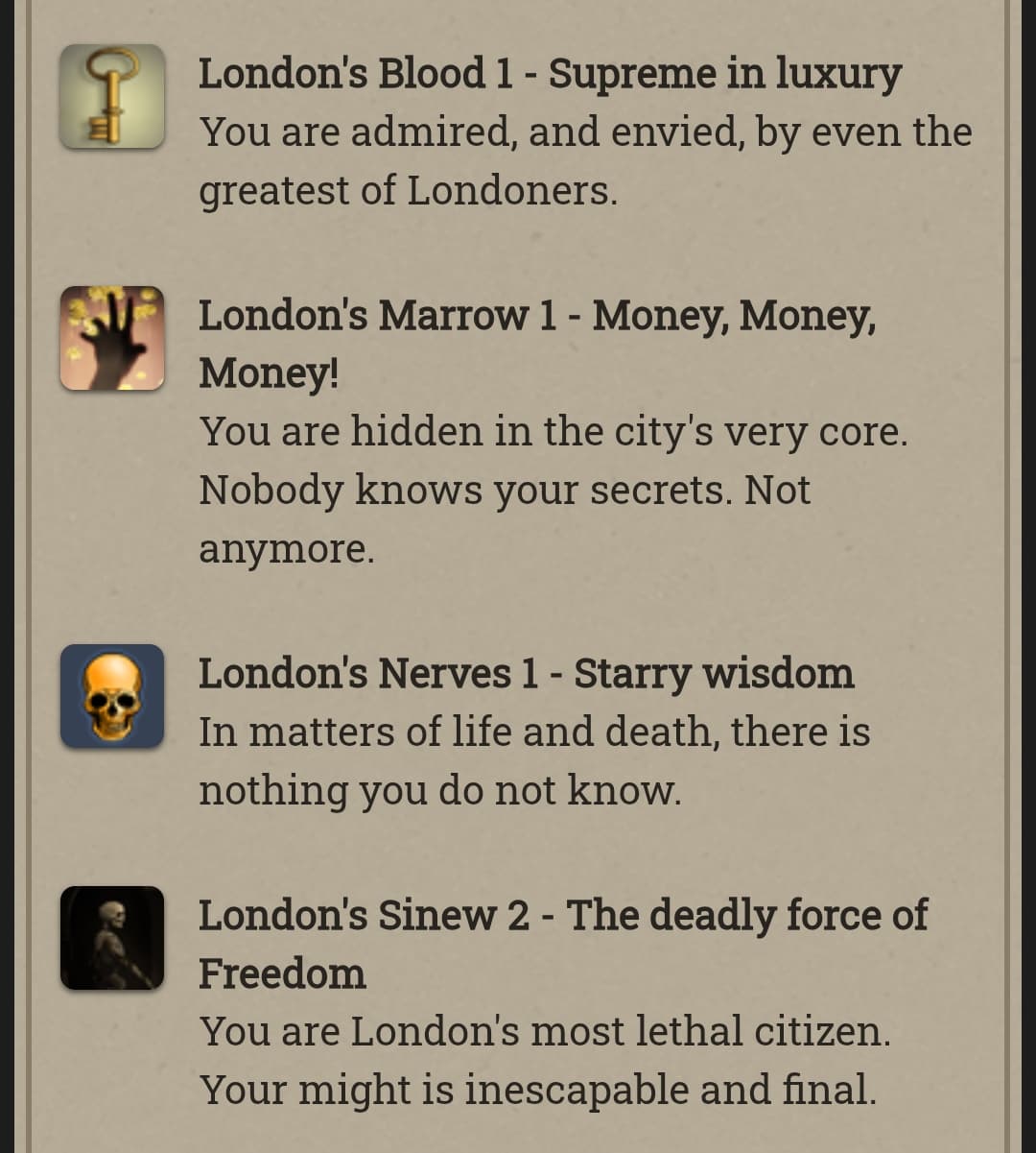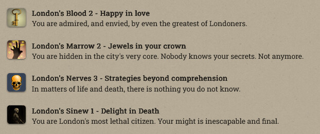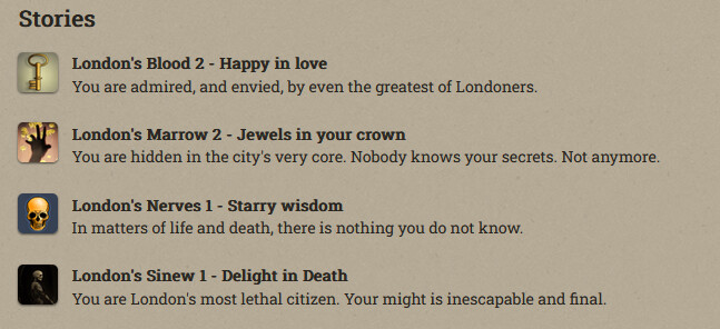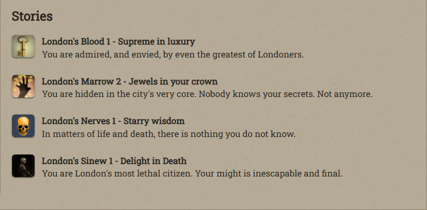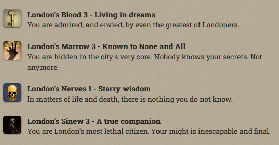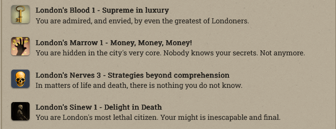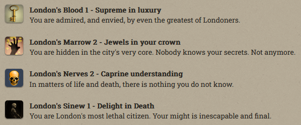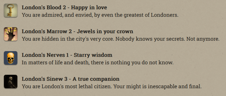 Anfroy J. Skelley, licentiate and siopian, is now a Paramount Presence! At the moment he’s just collecting books and keys. Fallen London