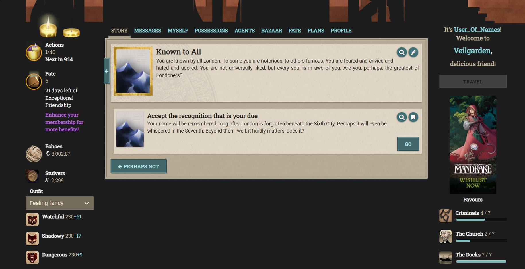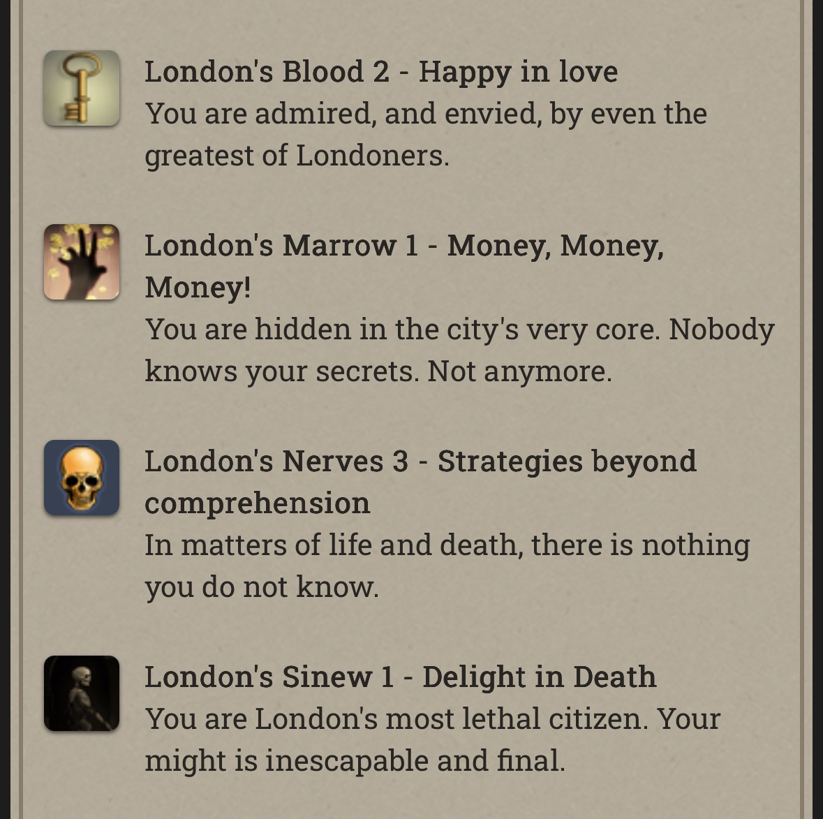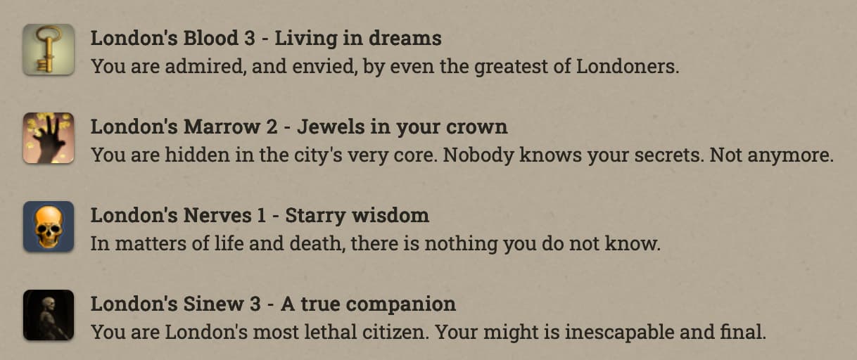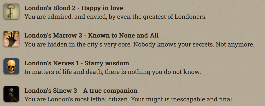 Anfroy J. Skelley, licentiate and siopian, is now a Paramount Presence! At the moment he’s just collecting books and keys. Fallen London