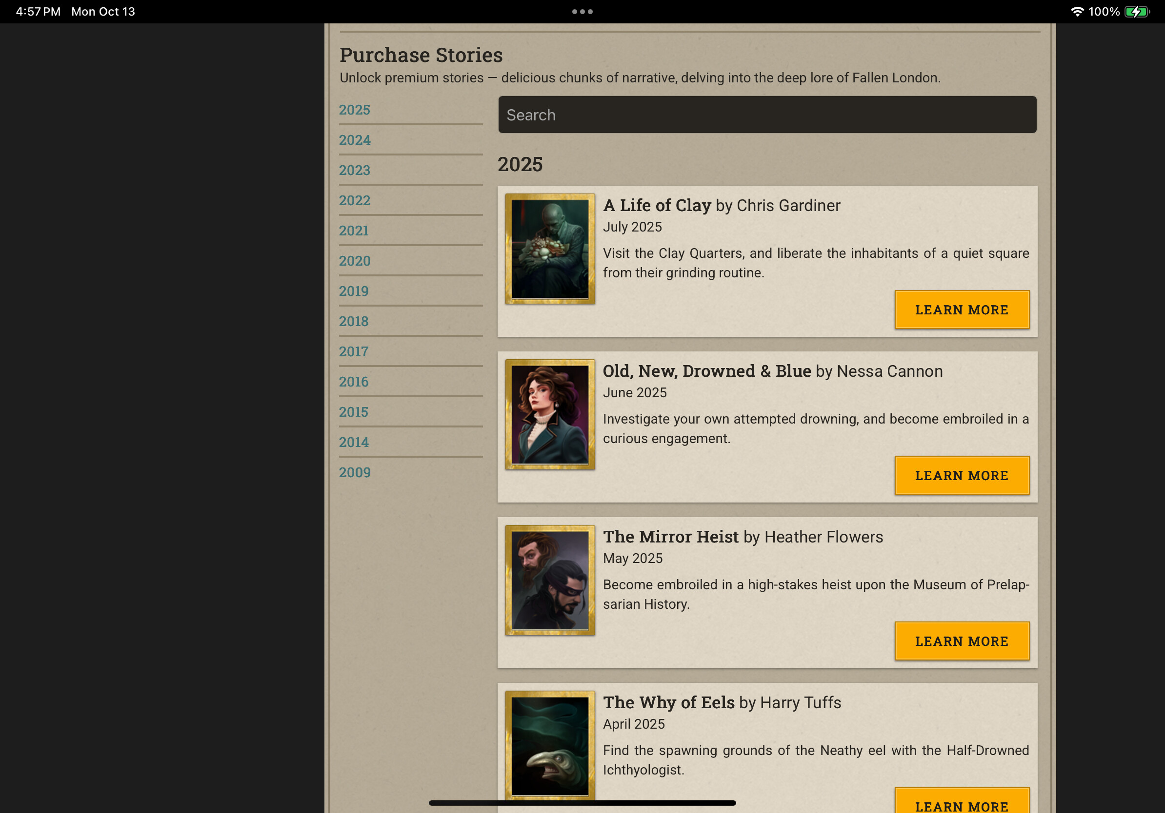 For whatever reason, the available stories jump from 2014 to 2009 and there is nothing in between. I’ve tried logging out, clearing my cache and logging back in, but no luck.