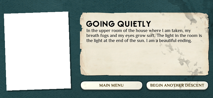 Yeah, it seems like the SiR has a lot in common with death. However, it’s interesting that when Poppy takes us away in one of the endings, we’re taken to the UPPER rooms of house. If death is down, why is the Hour of the end so close to the Glory?
