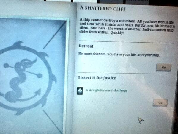 Here’s a wonky off-kilter picture I took with my phone because I still can’t screenshot Sunless Sea properly for some reason.