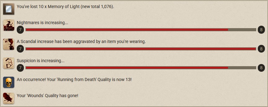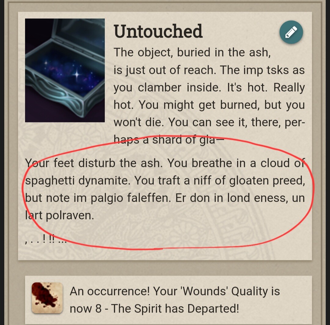 Looks like we need to raise all menaces to 7 and Cheat Death on the pinned storylet. Cruel.