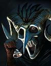Hat: The Cosmogone Crown, F.F. Gebrandt’s Patent Illuminating Cap (peligin), Gant Bowler of Fiduciary Responsibility, The Gant Moth, The Violant Demon [The Ephebe, Manifold is not described as any Neathy color, but given that the permanent versions of all the other Hallowmas masks are, and given that its icon is green, it could be assumed to be viric, or perhaps apocyan?]