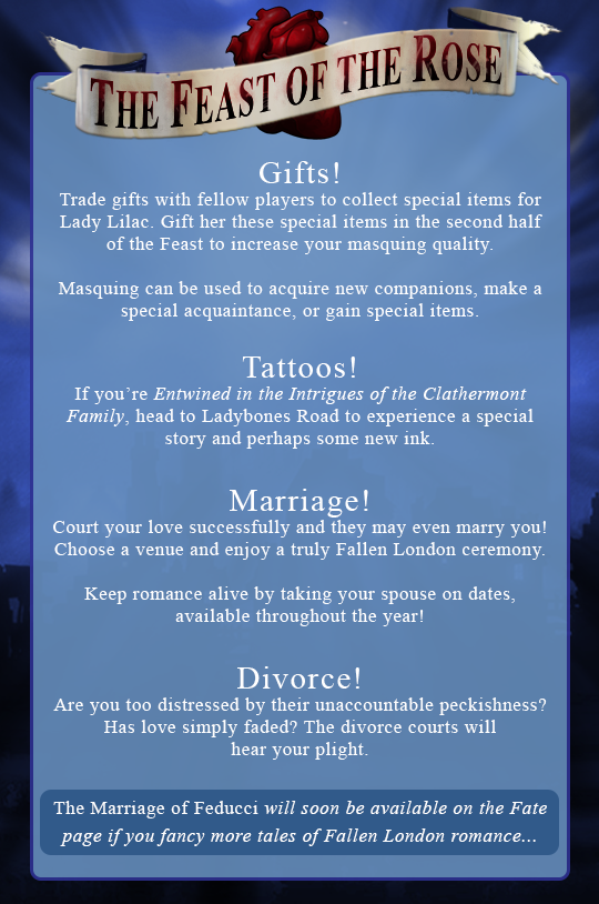 Fortify your heart ahead of Fallen London's festival of love, which will begin Monday the 5th of February and last for two weeks.